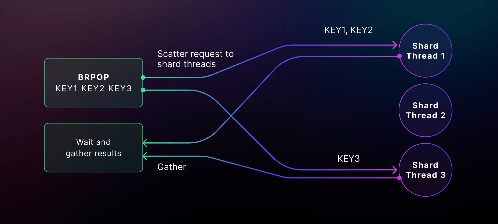 Circling back to the blocking commands, BRPOP is implemented as a multi-hop transaction. The general case (without blocking) is that we do a single hop to the shard threads that contain the requested queues (i.e., BRPOP queue_01 queue_02) and check if they are non-empty. And this is how the first hop looks: